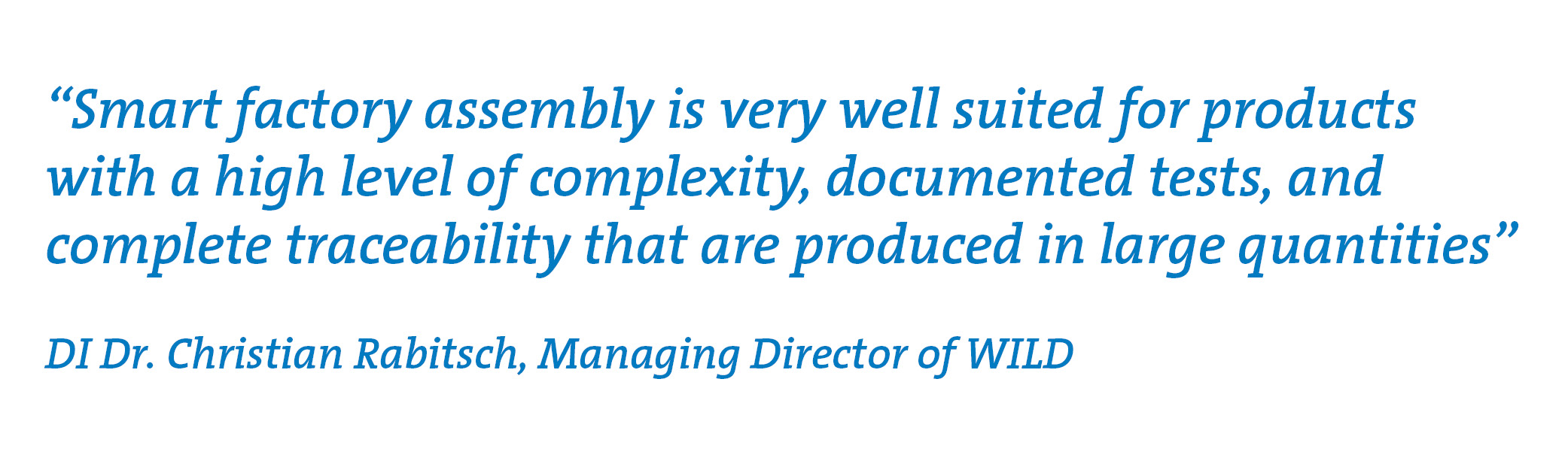 Revision adjustments were made and release processes individually adapted for the fast-growing Carinthian technology company. WILD is obliged to document even the smallest change in a workflow. Smart Factory Assembly automatically tracks every change.